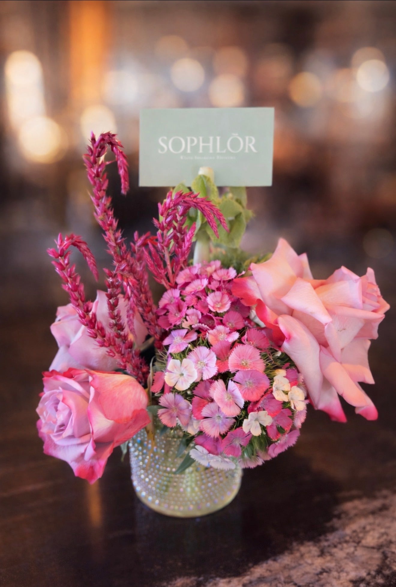 The Petite Amour arrangement designed to feel soft, thoughtful, and intentional. This petite, small-scale design is perfect for desks, bedside tables, or intimate gifting moments. Featuring a romantic blend of pink florals and layered texture, each arrangement is finished with our signature SOPHLŌR card.