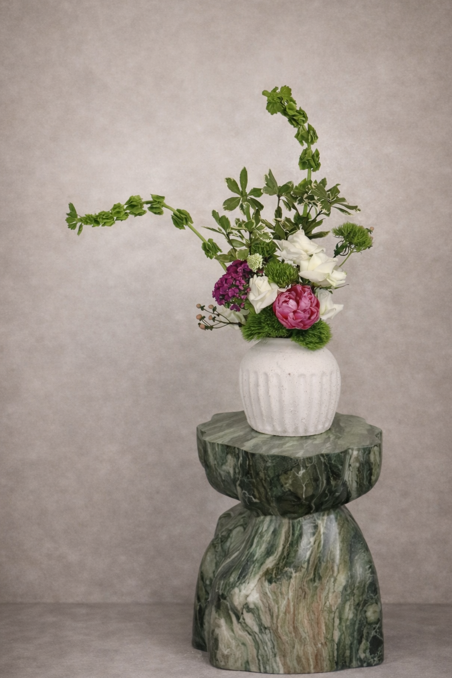 A lush, thoughtfully layered arrangement designed to create instant visual interest. Balanced in scale and richness, this design is our most versatile offering. It's substantial enough to anchor a space, yet refined enough for everyday enjoyment. A true conversation piece that effortlessly elevates any room it inhabits.